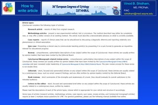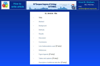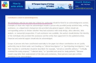 The document provides guidance on writing and publishing research articles, emphasizing the importance of selecting an appropriate journal and following its specific author guidelines. It also discusses authorship criteria and the significance of citation metrics for assessing research impact. Key resources and links for further reading and tools are included to assist authors in the writing process.