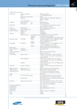 La telecamera Samsung VSNM-M300 è un modello da 3 megapixel con capacità di monitoraggio video via browser web, sensore di movimento con allerta, e supporto per alimentazione tramite rete (PoE). Offre flessibilità nella risoluzione video, dual codec MPEG-4 e MJPEG, e memorizzazione su scheda SD. Inoltre, supporta fino a 10 utenti in modalità unicast e include funzionalità di rilevamento del movimento e registrazione audio bidirezionale.