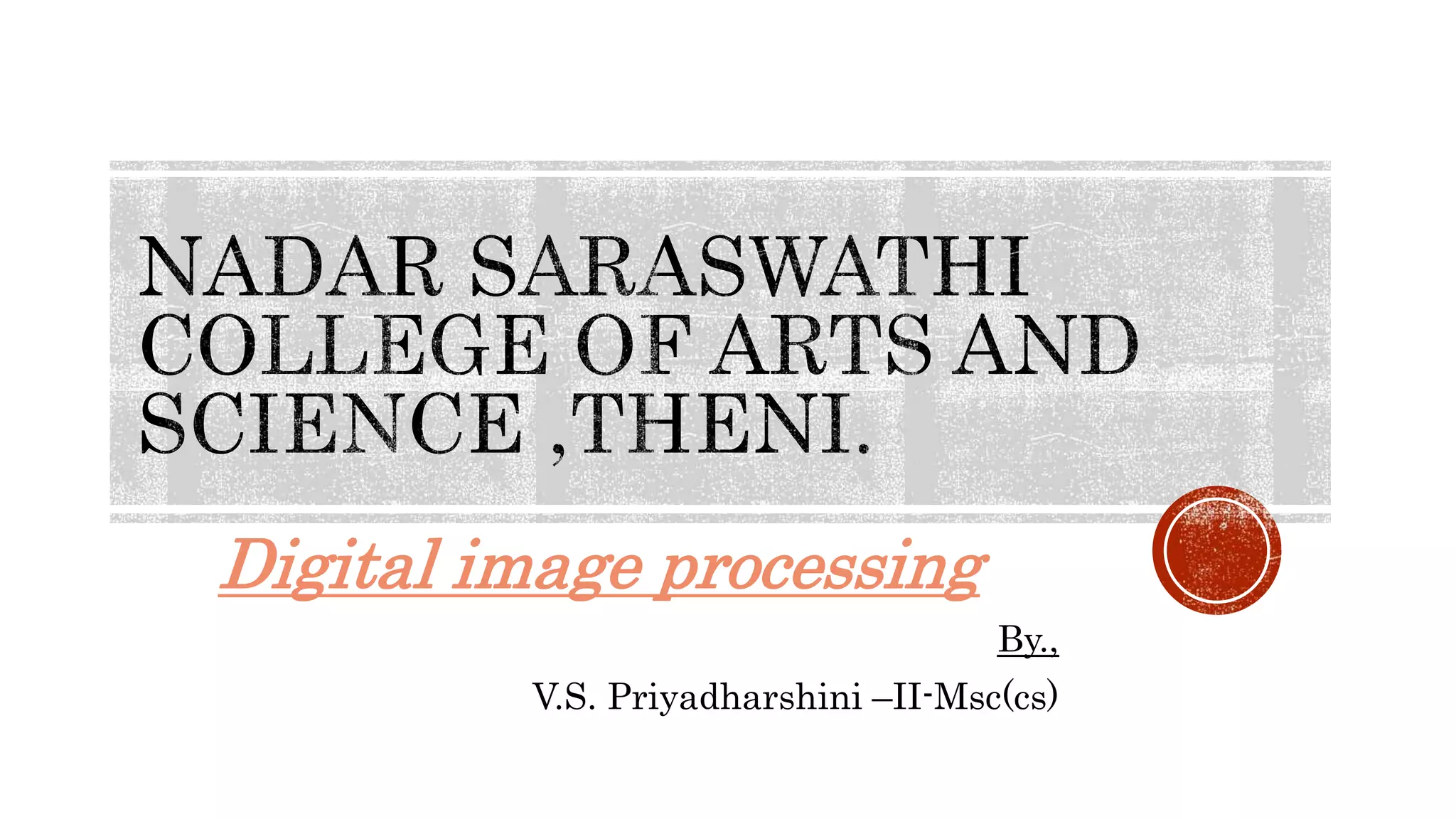 Digital image processing techniques can be used to enhance images by modifying pixel values using filters. Filters are classified as either spatial or frequency domain filters, with non-linear filters being more effective at edge detection than linear filters. The median filter is a common non-linear filter that replaces pixel values with the median of neighboring pixels to reduce salt-and-pepper noise. Image restoration techniques aim to reduce noise and recover lost resolution, such as by using deconvolution in the frequency domain to undo the effects of blurring.
