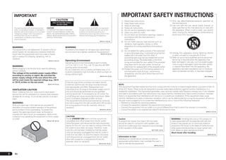 This document provides important safety instructions and warnings for an audio/video receiver. It cautions the user to read all instructions before use, keep children away from batteries, only use attachments specified by the manufacturer, and unplug during lightning storms. Ventilation openings should not be blocked to prevent overheating. It also provides instructions on volume levels for safe listening, handling power cords and plugs, cleaning, and troubleshooting.