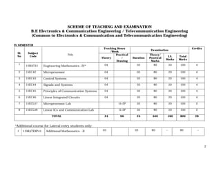 This document outlines the teaching scheme and examination for the 3rd semester of the B.E. Electronics and Communication Engineering/Telecommunication Engineering program.