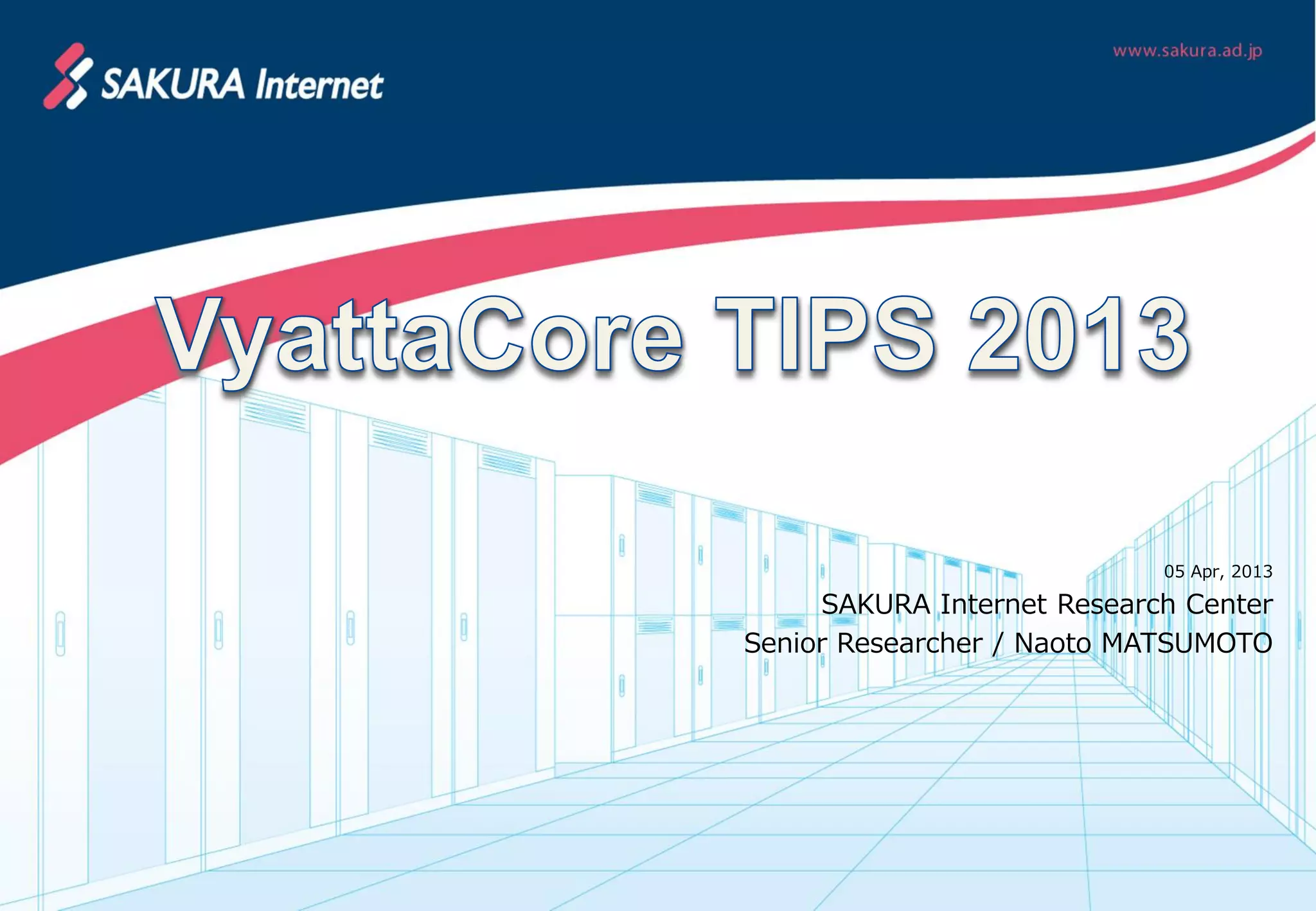 The document discusses the implementation of layer 3 direct server return (L3DSR) with policy-based routing on a Vyatta Core 6.5r1 virtual machine, detailing configurations for load balancing and routing. It also describes network performance tests, including Infiniband and Ethernet connectivity, along with installation steps for high-speed server interconnects using VMware ESXi. Furthermore, it provides specific configurations and verification steps for 40GbE network interface cards.