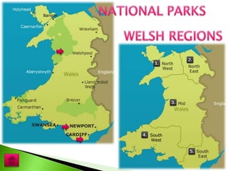 Llandaff Cathedral in Wales plans to build an oyster-shaped visitor center. Wales has several mountain ranges including Snowdonia in the north which contains Snowdon, the highest peak. The Black Mountains are located in the eastern part of the Brecon Beacons National Park. The Cambrian Mountains in mid-Wales have only one main road crossing them and are remote. The Pembrokeshire Coast National Park follows the coast in western Wales. The valleys north of Cardiff and towns like Merthyr Tydfil were historically home to coal miners and industries but now have smaller populations.