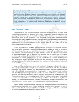 1) Scojo Foundation uses a market-based approach to sell affordable reading glasses to low-income communities through local entrepreneurs.
