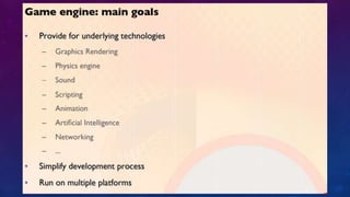- The course will cover topics like scene management, cameras, lighting, textures, physics, particles, animation over 12 weeks. Assignments and a final project will assess students.