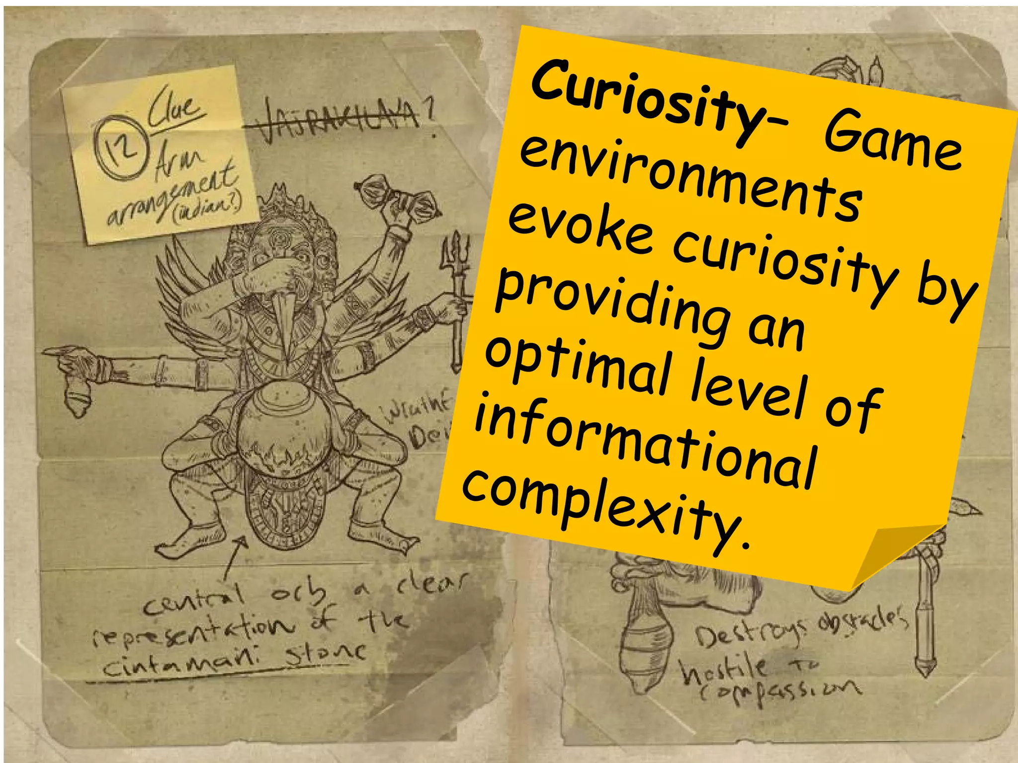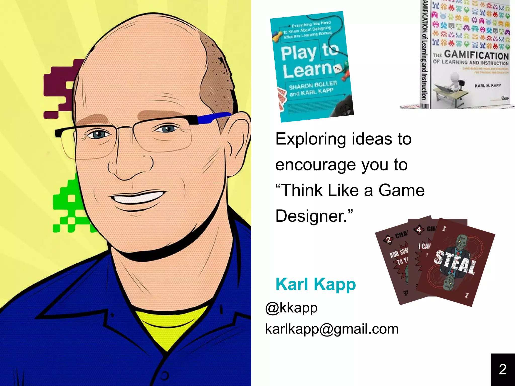 The document outlines a scenario where a game design team at SuperGame Corporation is tasked with creating a dragon-catching game, 'Dragónmon Go'. It emphasizes interactive game elements, suggesting that action, curiosity, challenges, and meaningful choices enhance learner engagement and cognitive gains. The presentation highlights the importance of thinking like a game designer to create engaging and effective learning experiences.