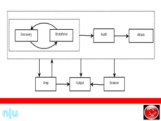 W3af is a web application attack and auditing framework similar to Metasploit. It combines mapping, discovery, and exploitation plugins to audit websites for vulnerabilities like SQL injection, XSS, file inclusions, and more. The discovery plugin finds URLs and injection points, the audit plugin tests those points for vulnerabilities, and the exploit plugin exploits any vulnerabilities found, returning things like SQL dumps or remote shells.