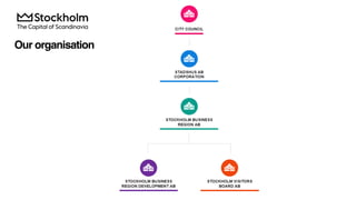 The document outlines Stockholm's vision for 2030, focusing on becoming a world-class business region with a goal to enhance innovation and economic competitiveness. It highlights initiatives for investment promotion, support for entrepreneurs, and various sectors like ICT, life sciences, and cleantech. Challenges mentioned include the need for improved infrastructure and increased employment opportunities for immigrants.