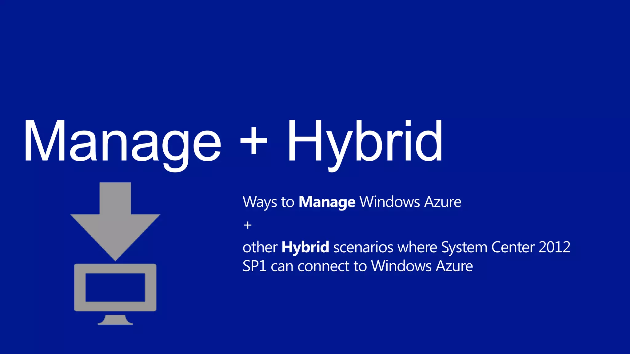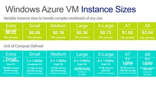 The document presents an overview of Windows Azure Virtual Machines, including cloud computing concepts, workload options, and management strategies. It highlights key features such as geo-replicated storage, VPN support, and cross-platform scripting capabilities using PowerShell. Additionally, it discusses licensing options and various applications compatible with Windows Azure.