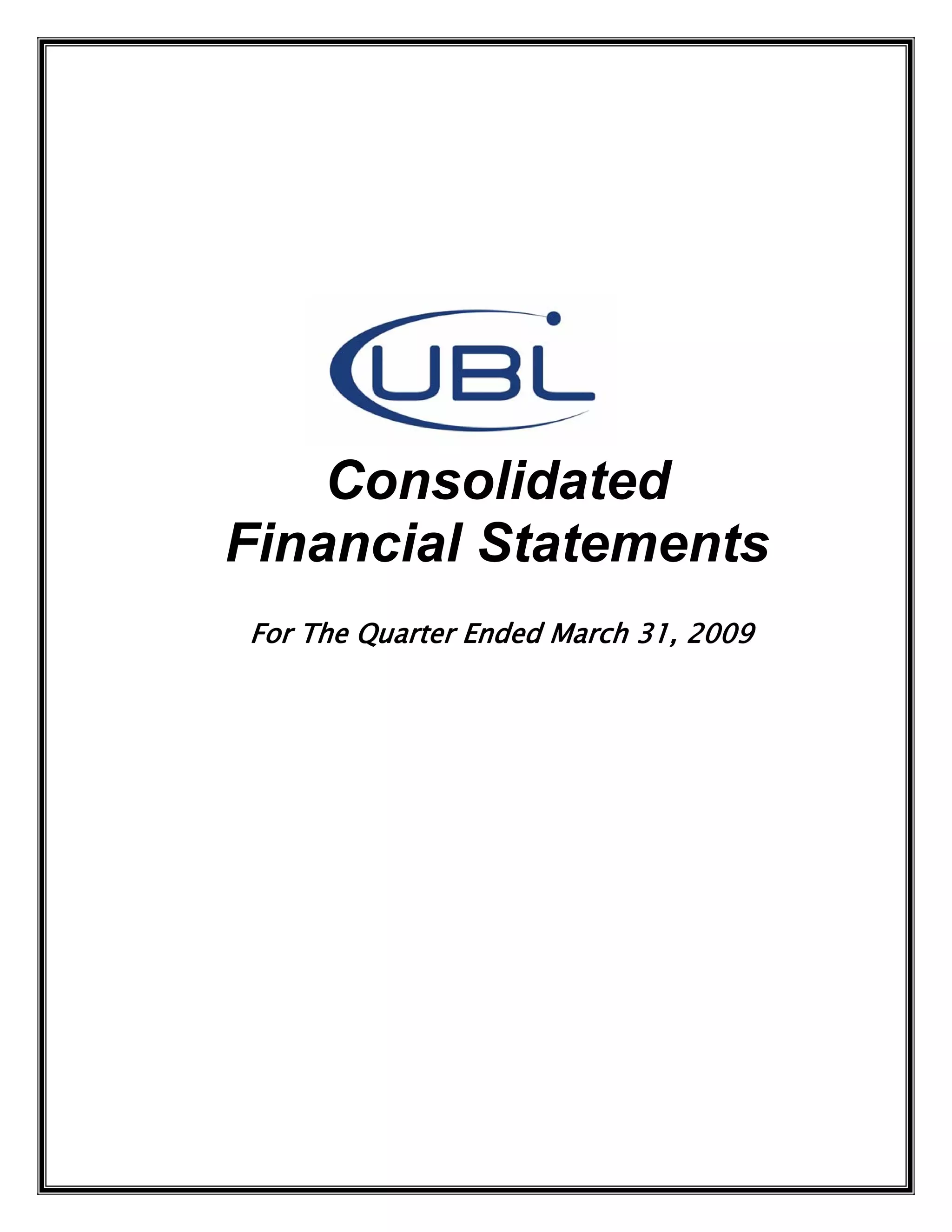 - The document is the consolidated financial statements of United Bank Limited and its subsidiaries for the quarter ended March 31, 2009.