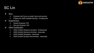 This document discusses WAF architecture on AWS. It begins by explaining what a WAF is and why they are used, such as to protect against common attacks like SQL injection and cross-site scripting. It then covers different WAF architecture options on AWS like using AWS WAF or traditional on-premise WAFs. It also compares these options based on factors like meeting compliance standards, maintainability and pricing. Finally, it includes a demo of AWS WAF rules and references additional resources.