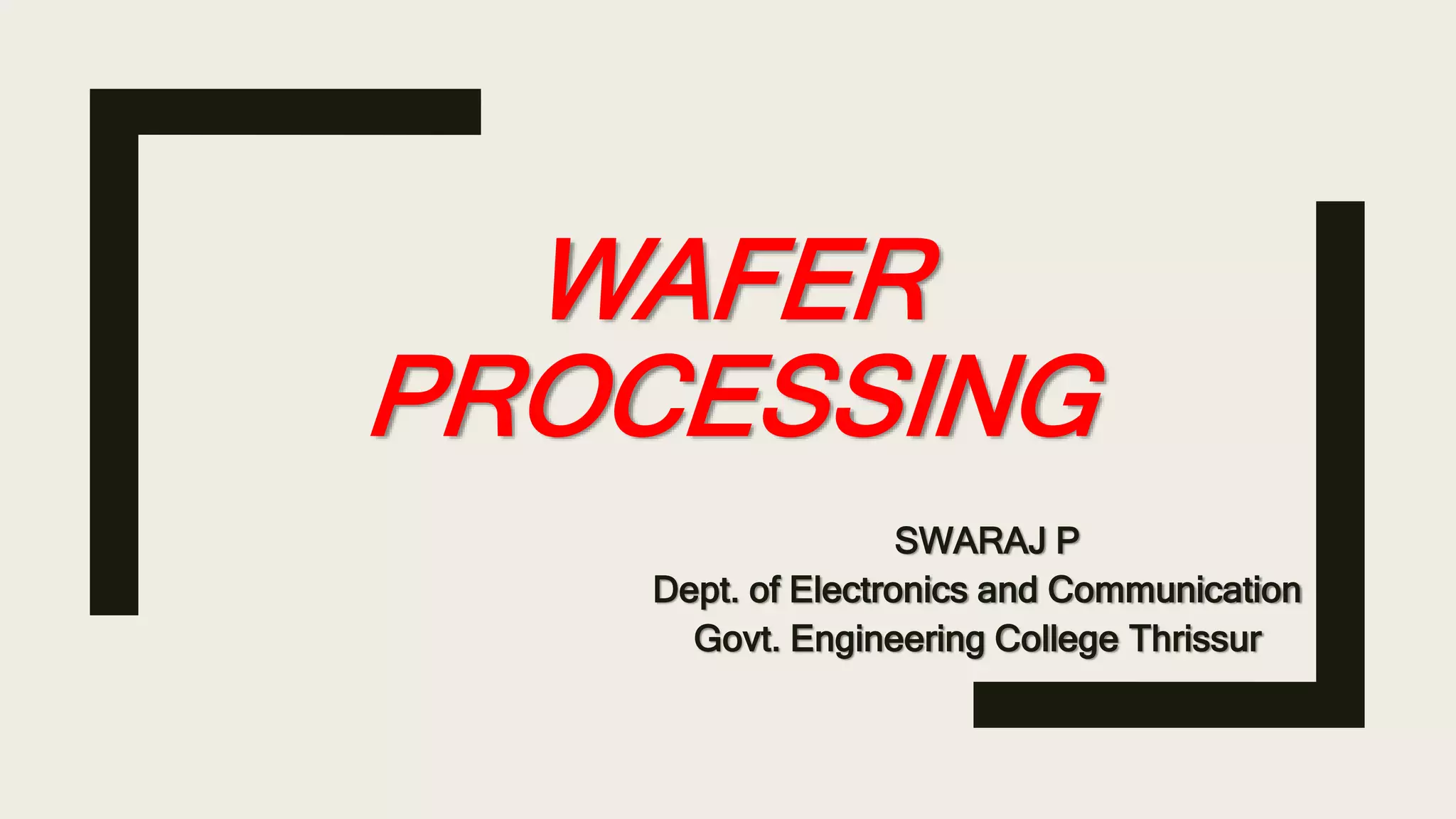 The document discusses the key steps in wafer processing: