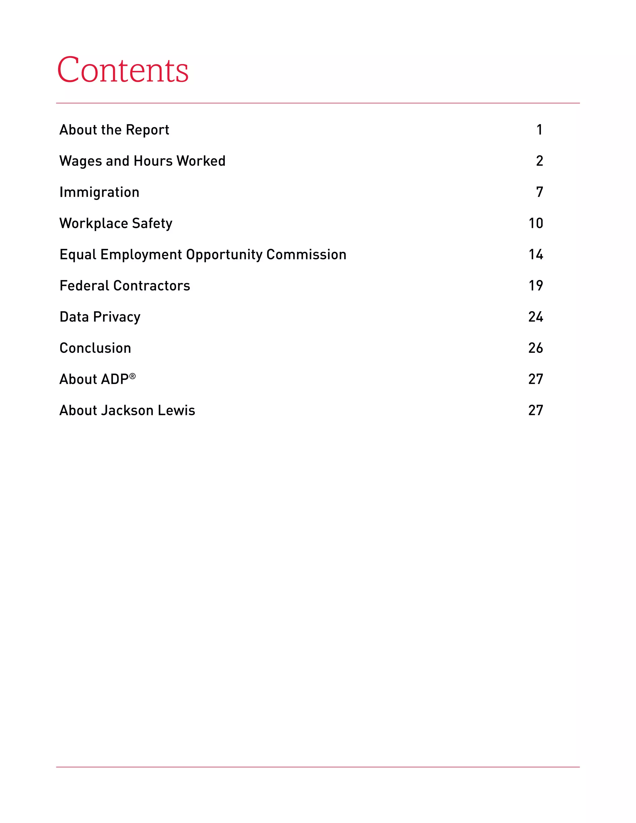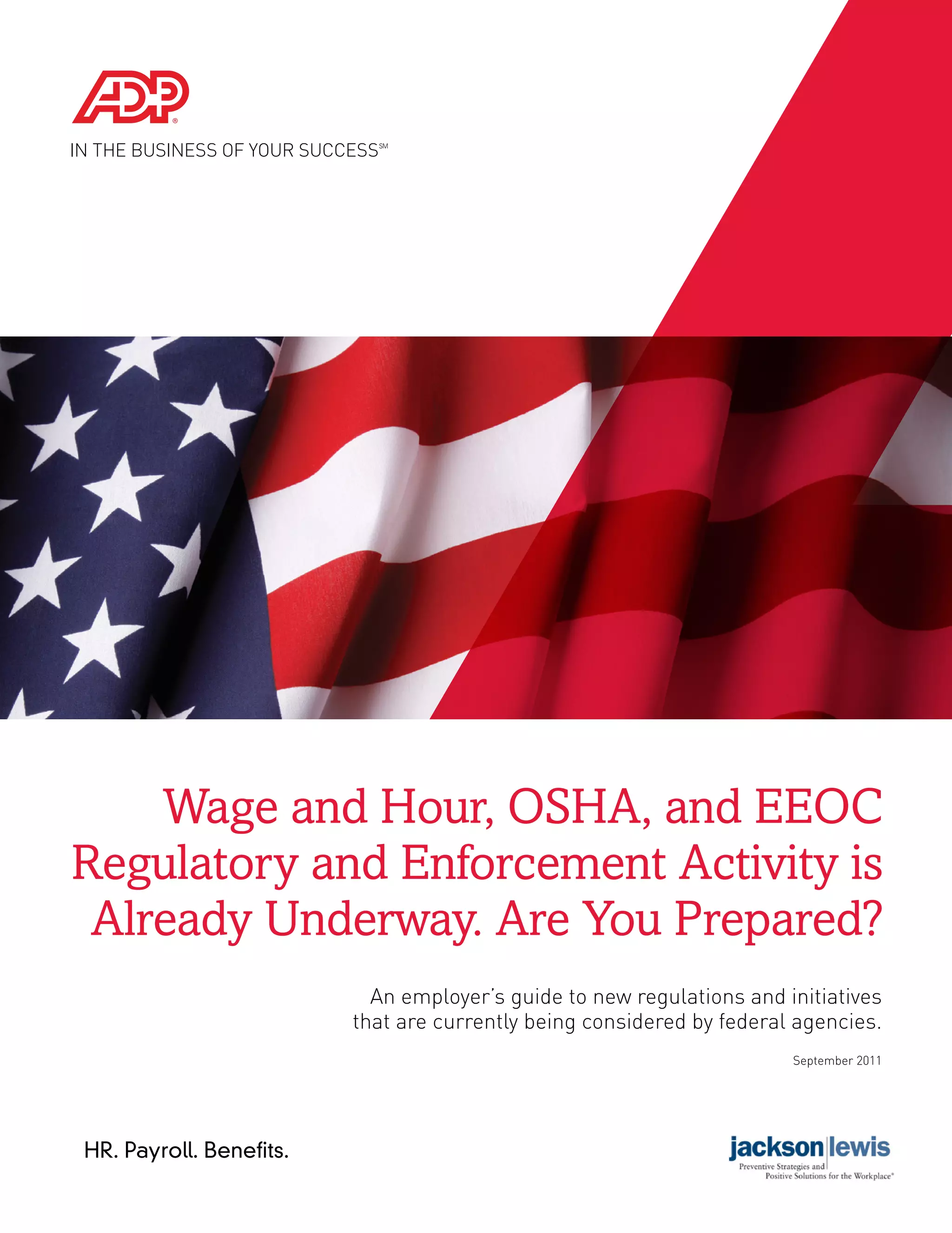 The document provides an overview of regulatory and enforcement activities underway at various federal agencies that impact employers, including the Departments of Labor, Homeland Security, and Equal Employment Opportunity Commission. It discusses new regulations, initiatives, and increased enforcement in the areas of wages and hours, immigration, workplace safety, equal employment opportunity, federal contractors, and data privacy. Employers are encouraged to review these changes and ensure compliance across all business locations and operations.