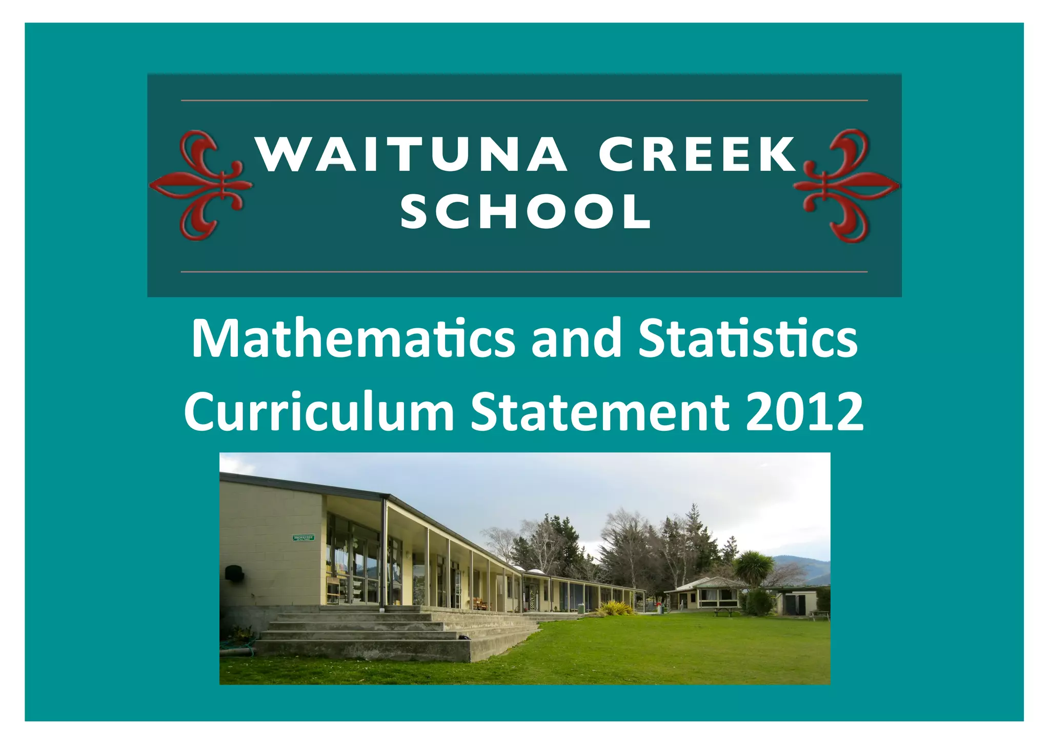 This document provides information about the mathematics curriculum and teaching at Waituna Creek School. It includes: