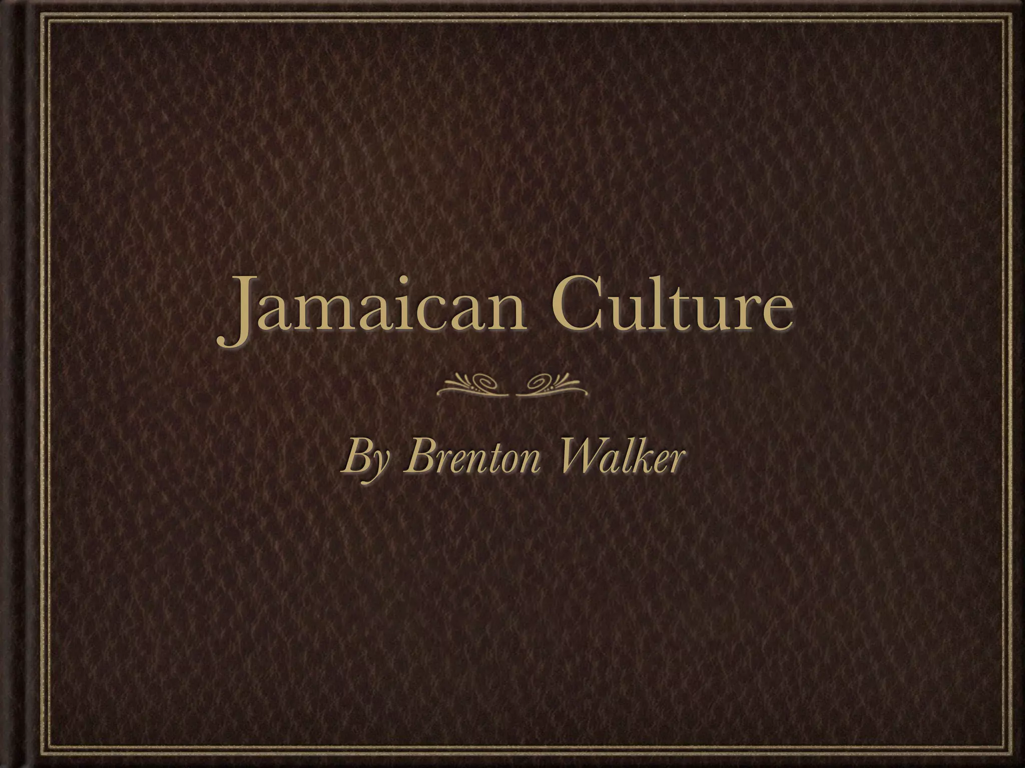Jamaican culture is shaped by its history of indigenous Arawak people, Spanish colonization, and African slavery. Key aspects of Jamaican culture include holidays celebrating independence and heroes, cuisine like jerk chicken and ackee and saltfish, dances like dancehall and kumina, and reliance on industries like tourism, sugar, and bauxite. The official language is English and patois is commonly spoken.