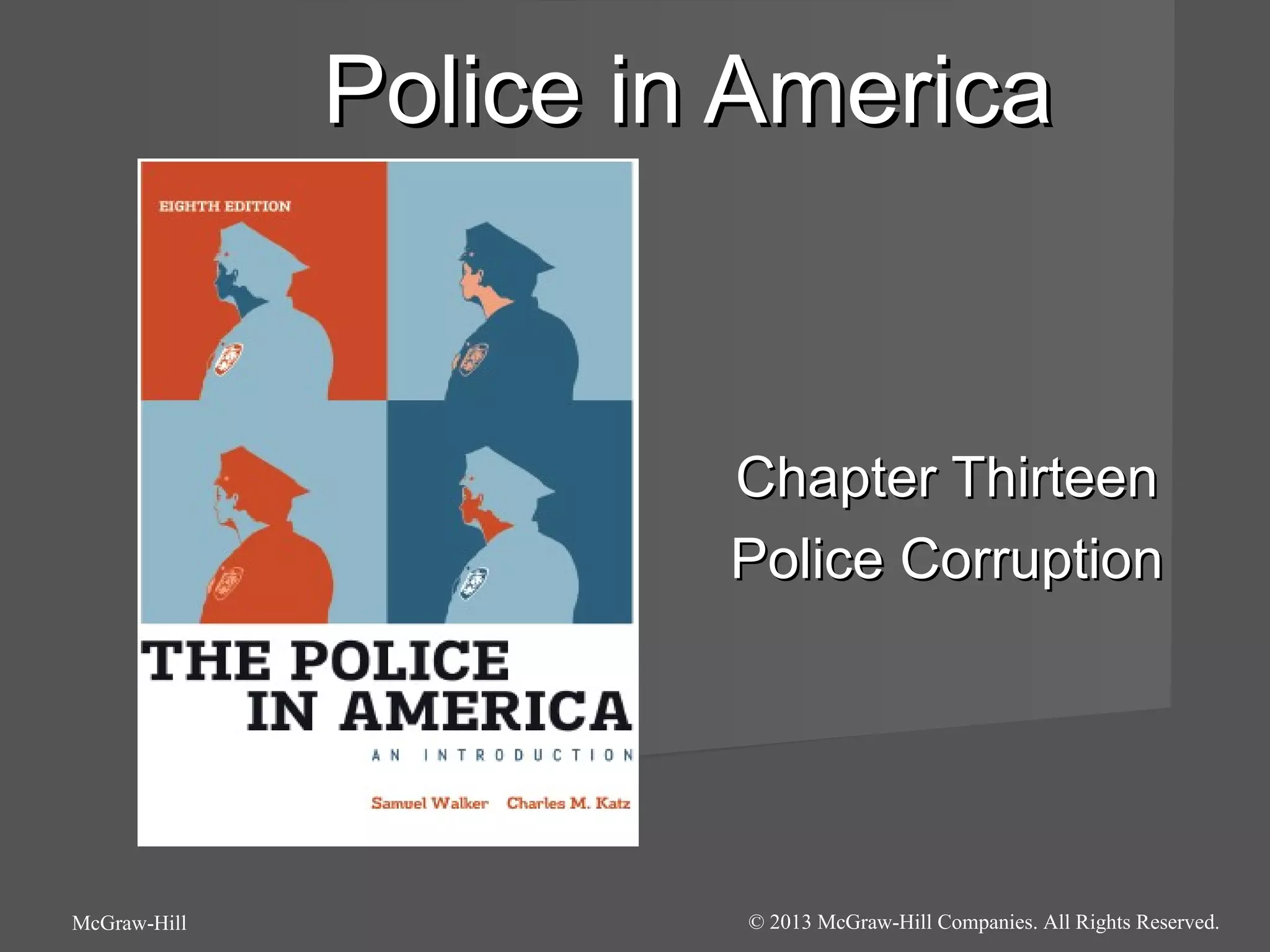 This document discusses police corruption, defining it as misconduct by police officers involving misuse of authority for personal gain. It outlines the costs of corruption, which include undermining the criminal justice system and public confidence in police. Various types of corruption are described, such as accepting gratuities or bribes, theft, and brutality. Theories for why corruption occurs include issues with individual officers, police subculture, lack of oversight and management failures. Controlling corruption requires strong internal policies and leadership within police departments, as well as external oversight and accountability. However, completely eliminating corruption may not be possible.