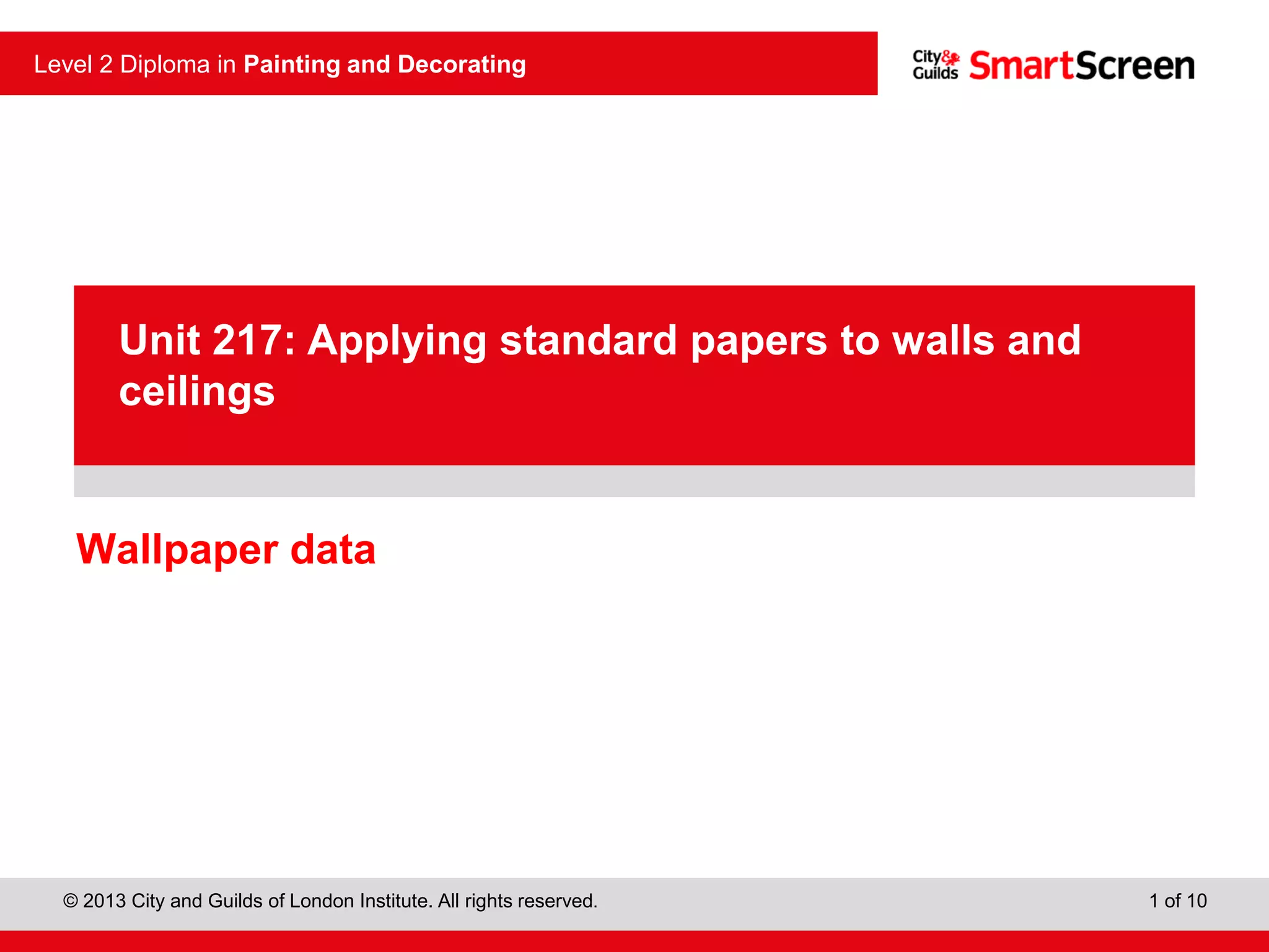 The document discusses wallpaper data and symbols, which provide important information for applying wallpaper properly. It explains that manufacturers' data sheets contain details about a paper's properties and instructions for use, including application methods, adhesive types, and symbols indicating the paper's pattern, batch number, cleanability, light-fastness, removal method, matching technique, hanging direction, design repeat, and coordinating fabrics. Correct interpretation of these symbols is necessary for successful wallpaper installation.