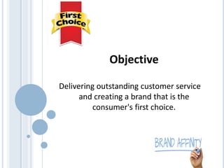 This document outlines a plan to revamp the after sales service for Reva Moto. It discusses establishing standard operating procedures and policies, process standardization from ticket creation to measuring customer satisfaction, implementing a CRM system using modern technologies, gathering customer feedback, contingency planning, service planning, competency development through training, parts inventory management, performance measurement, data analysis, and rewarding employees. The goal is to deliver outstanding customer service and create a brand that customers choose first.