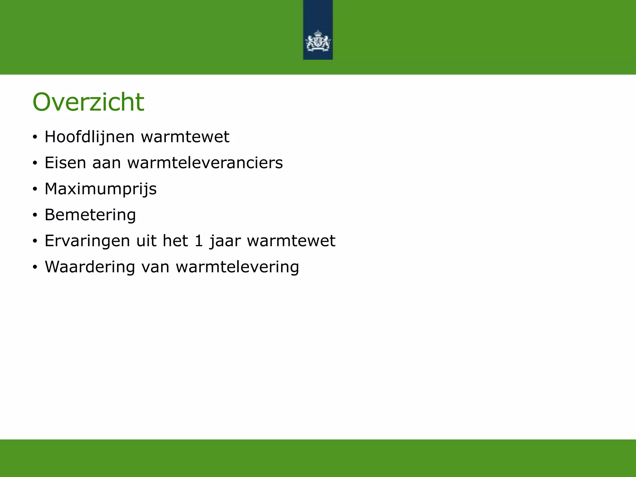• Hoofdlijnen warmtewet