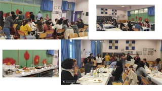 The document outlines the schedule and activities for a partnership visit to Greece between schools in Italy, Germany, France, and Portugal from October 17-21, 2022. The itinerary includes visits to local attractions in and around Agiasos, Greece like wetlands, castles, and museums, as well as attending classes and workshops at the host school IMERISIO GYMNASIO AGIASOU. The week concludes with a farewell party involving traditional songs, dances, and exchanging gifts.