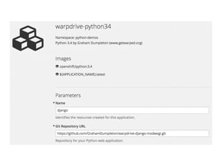 The document outlines 'warpdrive', a tool designed to simplify the deployment of Python web applications, particularly using Django. It details the steps for setting up a virtual environment, installing dependencies, and configuring a WSGI server for both local development and production. The document also emphasizes integration possibilities with various hosting platforms and seeks feedback from users.