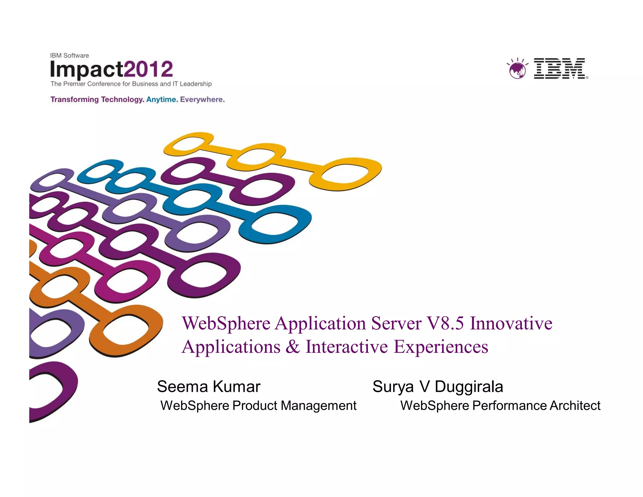 WebSphere Application Server v8.5 introduces significant innovations aimed at enhancing application performance, scalability, and developer experience. Notable features include a lightweight Liberty profile for faster server start-up, improved operational management, and tools for seamless application migration. The update also emphasizes intelligent routing, dynamic clustering, and robust health management to ensure continuous application availability and resource efficiency.