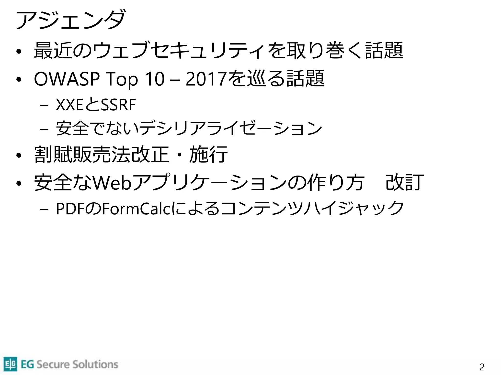 • 最近のウェブセキュリティを取り巻く話題