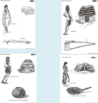 The first Americans crossed into North America from Asia over a land bridge between Siberia and Alaska during the last ice age approximately 30,000 years ago. As the climate warmed, sea levels rose and the land bridge disappeared. Native Americans then adapted to different environments across North America, developing distinct cultures and ways of life based on the available natural resources in each region. Though cultures varied regionally, most Native American societies shared some common beliefs like respecting nature and only taking what was needed.