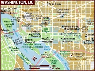 The document provides advice for visiting Washington D.C., recommending bringing comfortable walking shoes to see multiple sites, being respectful at memorials of those who died protecting the country, and taking time to read exhibits at museums to fully appreciate the history. Contact information is provided for anyone seeking additional details about planning a trip.