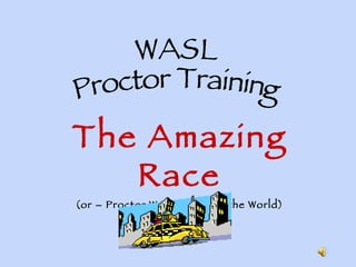 The document provides training information for proctors administering the WASL (Washington Assessment of Student Learning) test to grades 3-8. It outlines new details for the shorter 2009 WASL test and accommodations for English language learners and special needs students. Proctors are instructed to review testing manuals, ensure secure test environments and materials, and provide allowed tools or accommodations as needed. The training emphasizes strict test security before, during and after test administration.