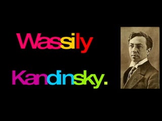 Wassily Kandinsky was a Russian painter and art theorist born in 1866 in Moscow. He is credited with painting the first modern abstract works. He studied law and economics at the University of Moscow before beginning painting studies in his 30s, including life drawing, sketching, and anatomy. The writer chose to discuss Kandinsky because they found his work to be colorful and thought-provoking, enjoying its ability to engage the soul and spark interest. Kandinsky's style incorporated surrealism and cubism, using shapes and representations of dreams to create abstract pieces that blurred reality.