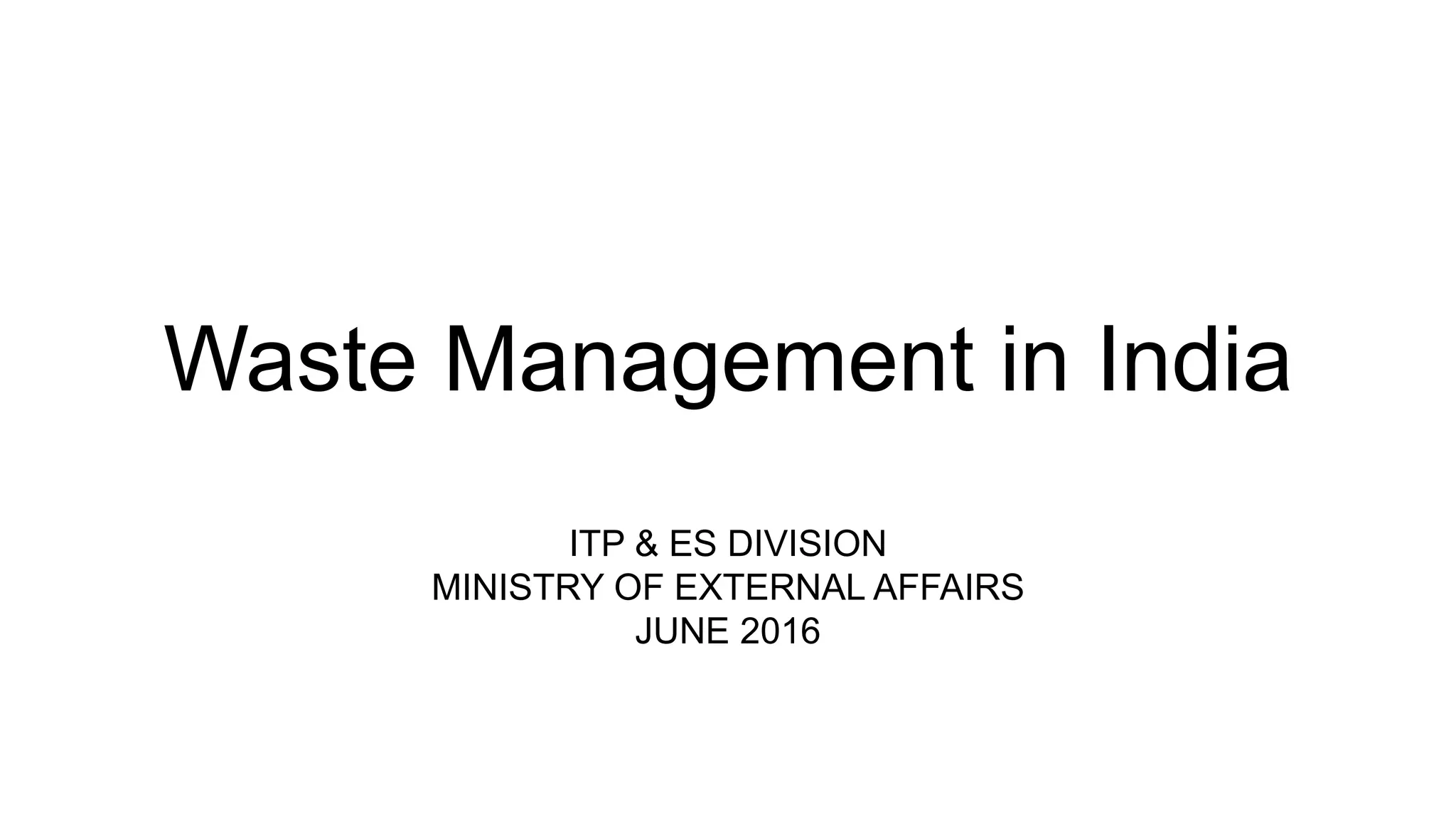 - India generates significant amounts of annual waste, including 62 million tonnes of total waste, 5.6 million tonnes of plastic waste, and 0.17 million tonnes of biomedical waste. Waste generation is projected to increase substantially by 2030 and 2050.