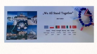 Two students from Poland, Agata Tomaszewska and Barbara Maciejewska-N'sir, attended a transnational project meeting in Turkey where they presented bracelets and paintings promoting the message of "We All Stand Together". The paintings and bracelets, created by Agata Tomaszewska, featured the acronym "WAST" to represent the idea of unity and togetherness between people. Photos of the items and meeting were taken by Barbara Maciejewska-N'sir.