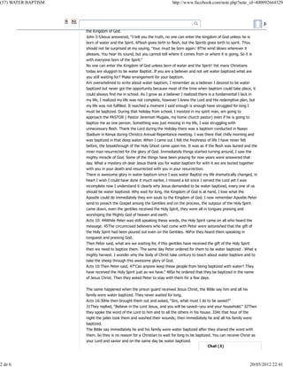 This document discusses the importance and meaning of water baptism in Christianity. It states that water baptism is essential for Christians but many misunderstand its significance. Jesus insisted on being baptized by John the Baptist to fulfill all righteousness, which refers to the three fundamentals of the Christian walk: water, blood, and the Spirit. These three agree and work together. The document urges believers who have not been baptized to make arrangements to do so, as no one can enter the Kingdom of God unless born of water and the Spirit. Water baptism signifies being buried with Christ in death and resurrected with Him.