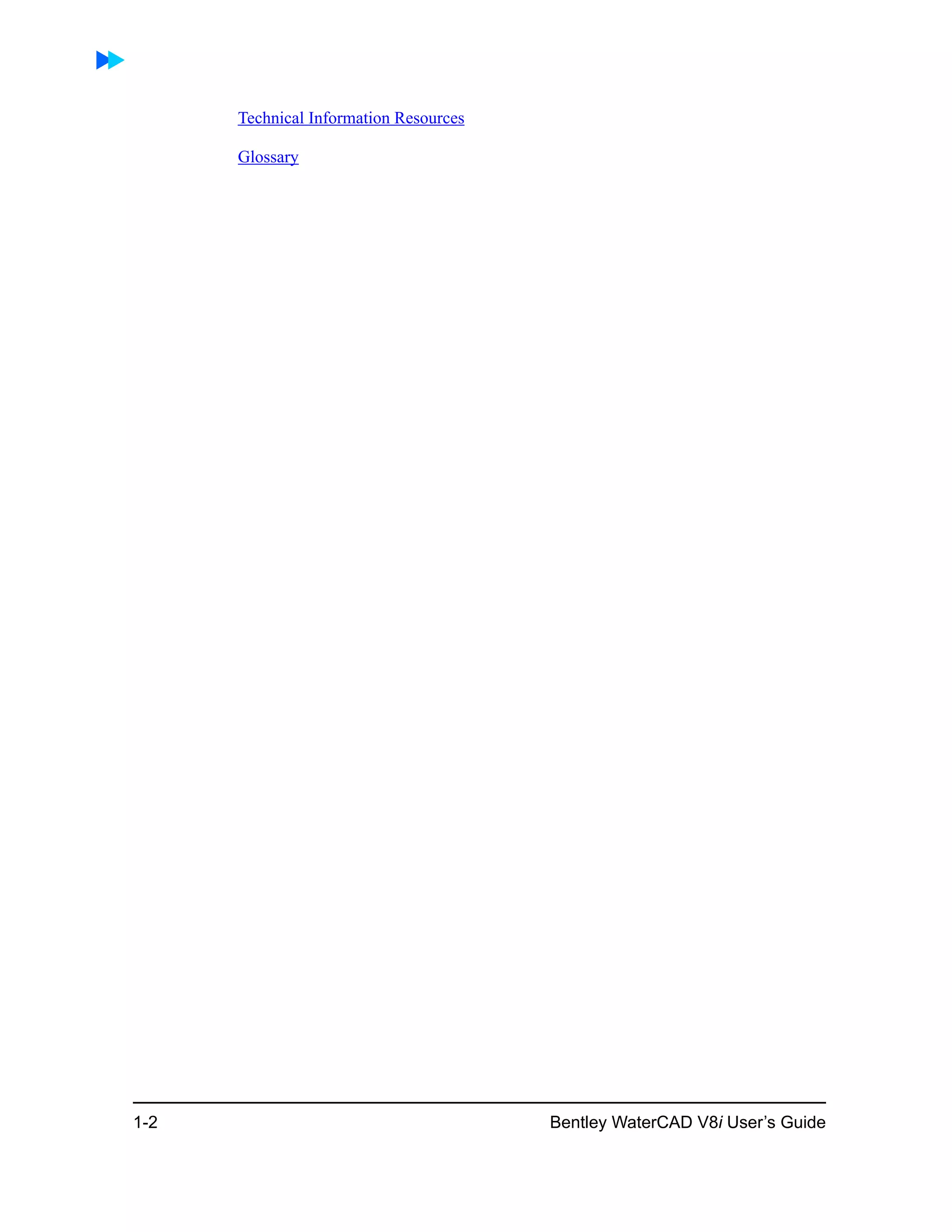 This document provides an overview and user guide for Bentley WaterCAD V8i software. It covers getting started topics like the user interface, creating models, and transferring data. It also provides tutorials on key tasks like steady state analysis, scenario management, reporting, and optimizing designs. Advanced topics on pressure dependent demands, criticality analysis, and customization are also included. The document serves as a comprehensive reference for using all of WaterCAD's modeling, analysis, and optimization capabilities.