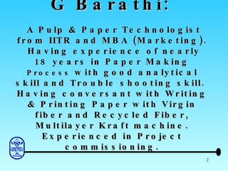 SPB implemented several water conservation measures at its paper machine that reduced fresh water usage. They included recycling vacuum pump cooling water back to the pumps instead of sending it to the ETP. They also reused deculator vacuum pump sealing water by routing it through a cooling tower instead of to the white water tank. These changes eliminated fresh water makeup for the vacuum systems and reduced the overall fresh water usage.