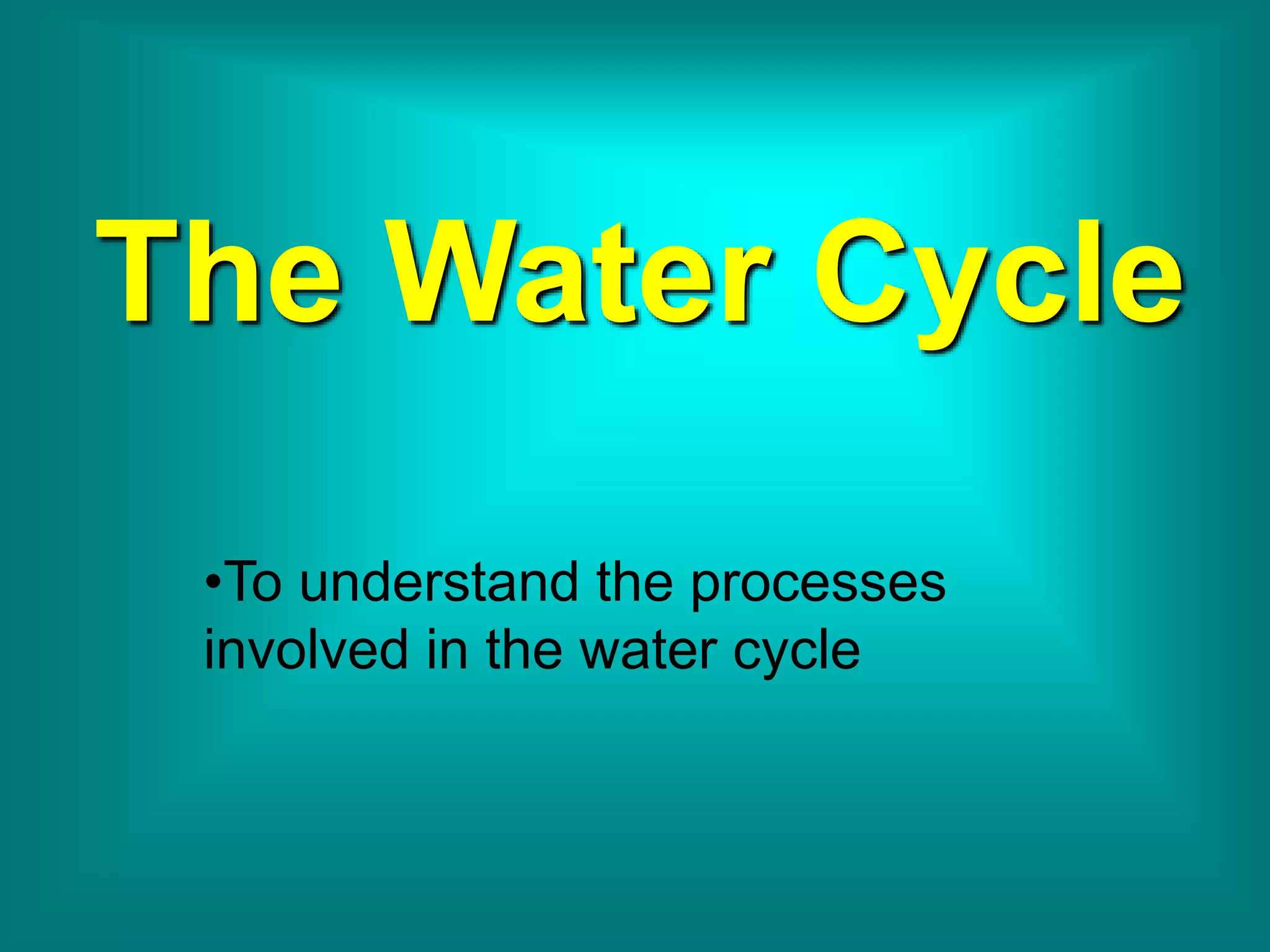 The document describes the water cycle. Water evaporates from seas and forms clouds when heated by the sun. The water vapor condenses as it rises and cools in the air, forming precipitation like rain or snow. Precipitation falls back to land and seas, completing the cycle as the water returns to where it was evaporated from.