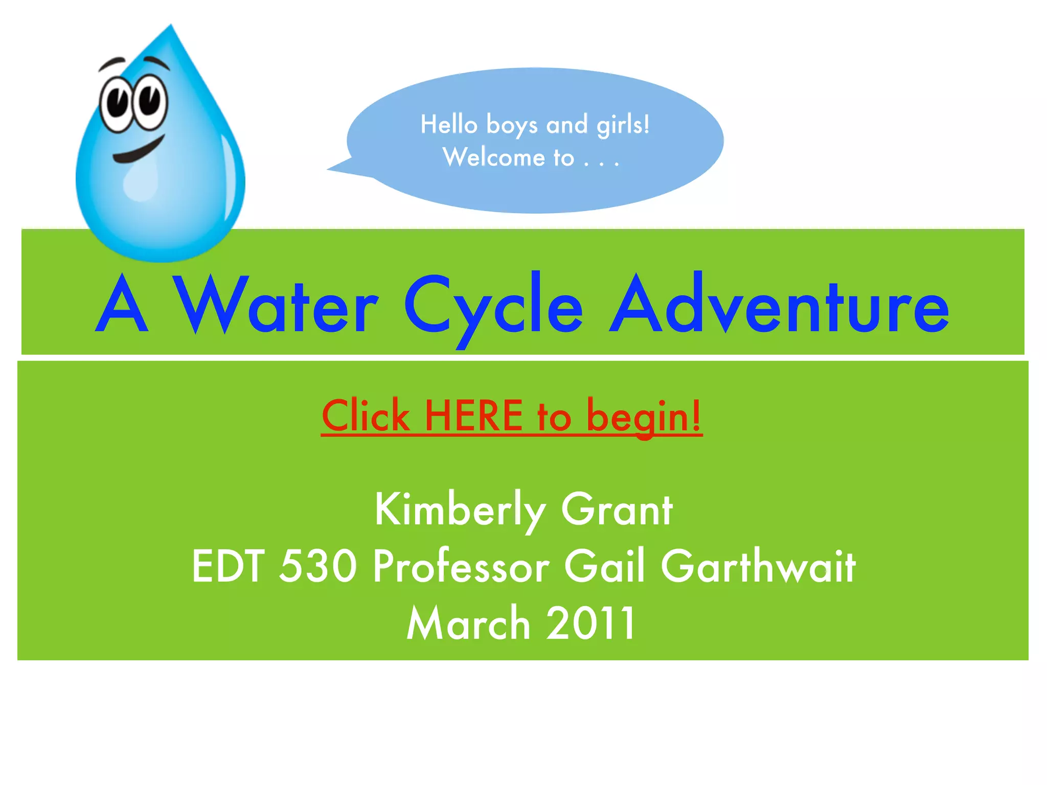 This interactive document provides a concise 3-part summary of the water cycle: