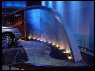 Crystal Fountains, established in 1967, is a leader in the commercial water feature industry with offices globally. The document outlines various water movement techniques, design principles, and innovative features including elevated water tables, vertical features, and sequencing devices that enhance aesthetic appeal. It emphasizes the importance of integrating design details and mechanical systems to create captivating water displays and the necessity of careful planning and testing in design execution.