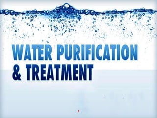 Water purification is a 14-step process that begins with water collection and ends with independent quality testing. The steps include activated carbon filtration, water softening, reverse osmosis for demineralization, remineralization by adding selected minerals, micron filtering, ultraviolet and ozone disinfection, bottling control, packaging quality assurance, line sanitation, and multiple levels of quality control and testing to produce safe drinking water.