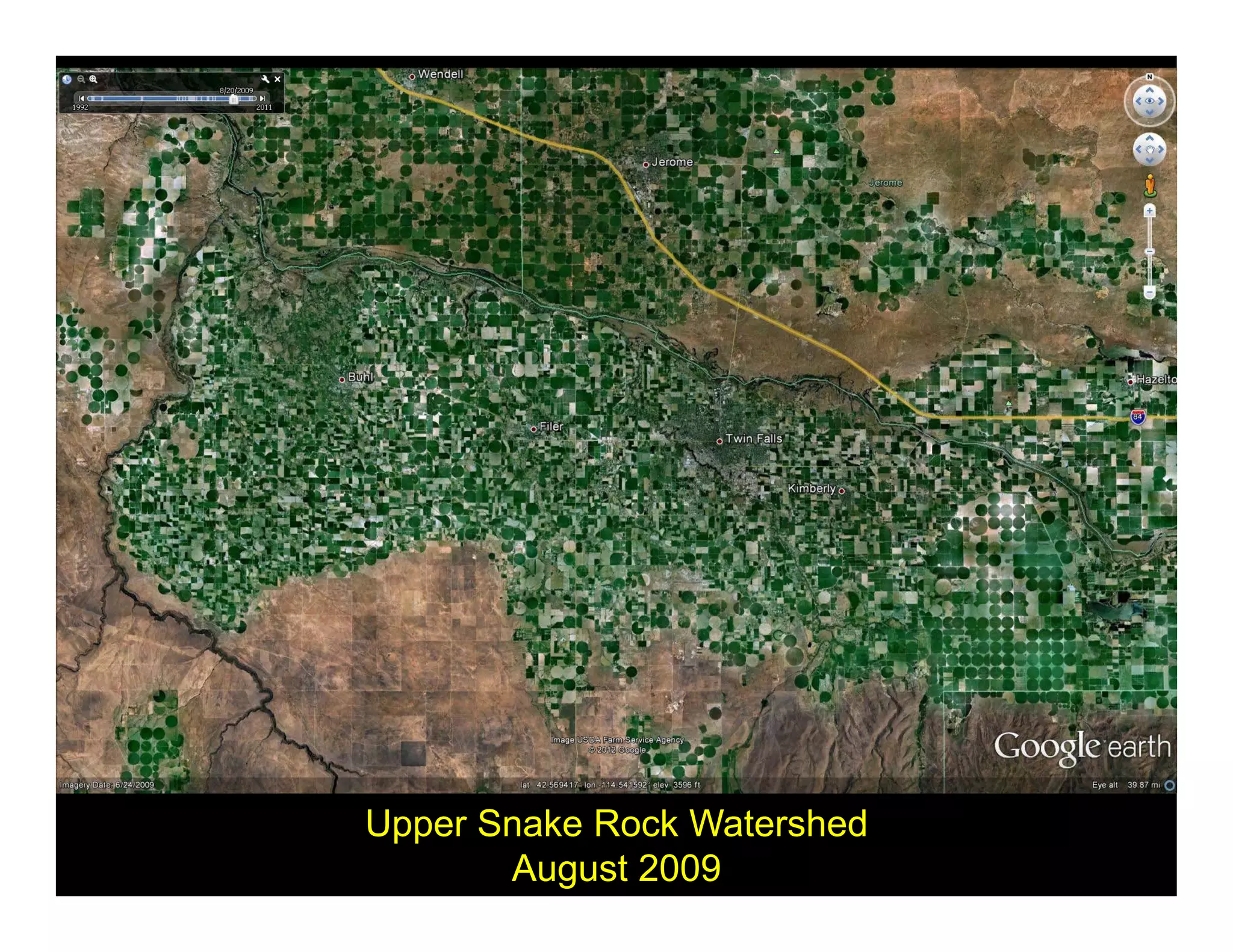 The document discusses water quality improvement in the Upper Snake Rock Watershed in Idaho from converting irrigation systems from surface to sprinkler irrigation. It summarizes that sediment and phosphorus loss from a farm decreased by 90% when the entire farm was converted from furrow to sprinkler irrigation. Overall, sediment loss across the watershed has dramatically decreased since the 1970s due to multiple conservation practices, though the specific amount of sprinkler irrigation within sub-watersheds did not correlate directly to sediment loss. Conversion to sprinkler irrigation appears to be an effective way to reduce sediment and phosphorus runoff.