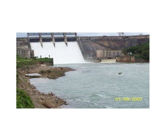 This document discusses water resources in India and water conservation efforts. It explains that while three-fourths of the earth is covered in water, only a small portion is freshwater that can be used. It then outlines various causes of water scarcity in India like population growth, overexploitation for irrigation and industries, urbanization, and pollution. It discusses various traditional and current water harvesting systems used in India like rooftop rainwater harvesting, diversion channels, and tanks. It also explains the benefits and criticisms of multi-purpose dam projects, and emphasizes the need for improved water management and conservation.