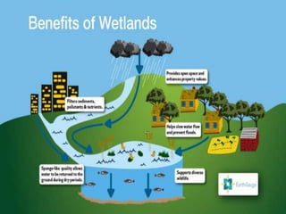 Water is stored naturally in groundwater aquifers, soil water, wetlands, and artificially in small ponds, tanks, and reservoirs behind dams. Groundwater is water found underground in cracks and spaces in soil, sand, and rock. Soil water describes the amount of water contained in the soil. Wetlands are land areas saturated with water permanently or seasonally. Artificial storage includes community or household ponds and tanks filled by rainwater, groundwater, or surface runoff, as well as reservoirs behind dams used for electricity or water supply.