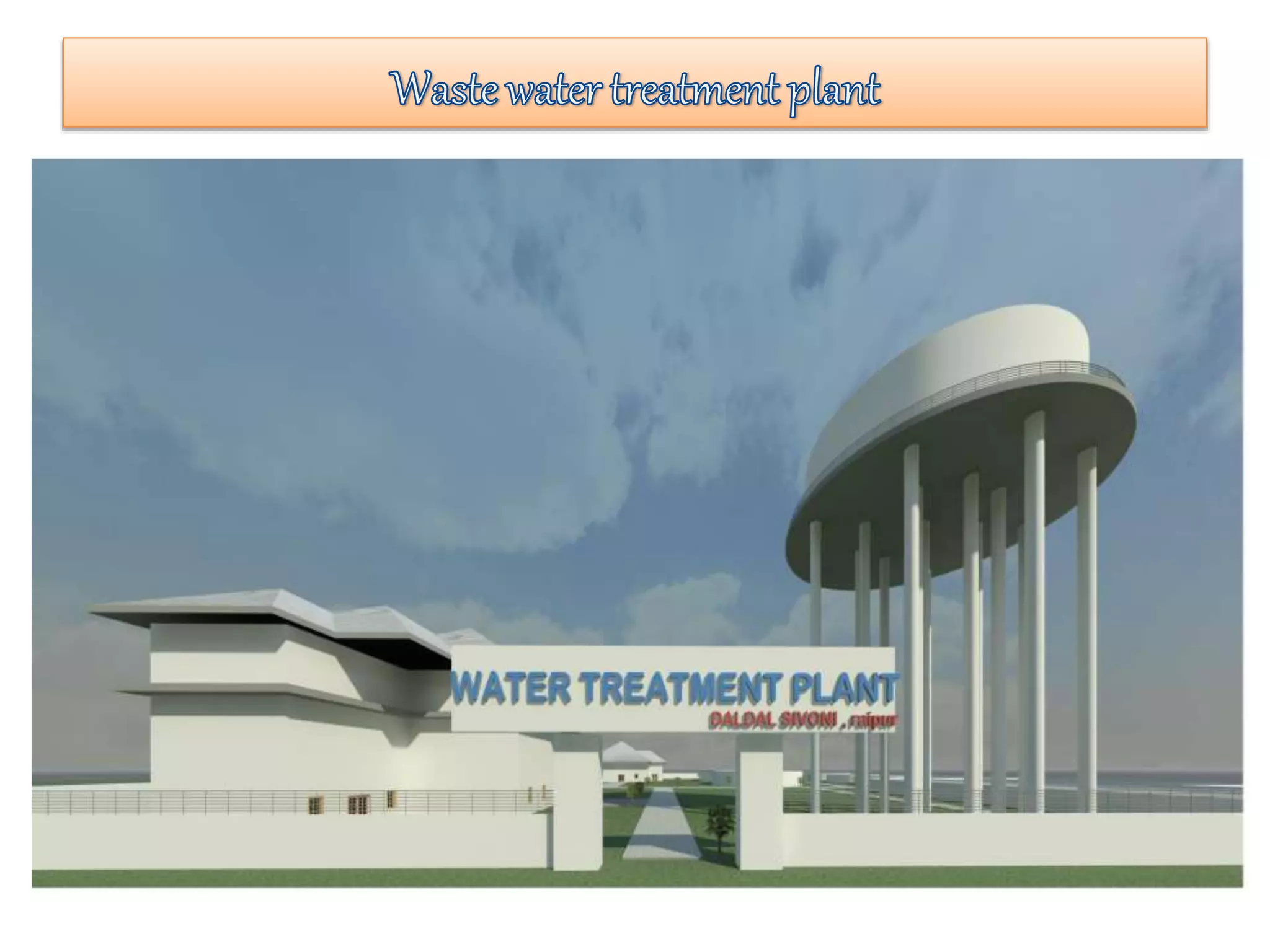 The document discusses the design of a water treatment plant in Bhatagaon, Raipur. It explains what water and polluted water are, as well as the percentage of water on Earth. It describes the components of a water treatment plant and provides details about the designed plant such as its capacity, area, and volume. It emphasizes the importance of water conservation and thanks the project leader and team members for their work.