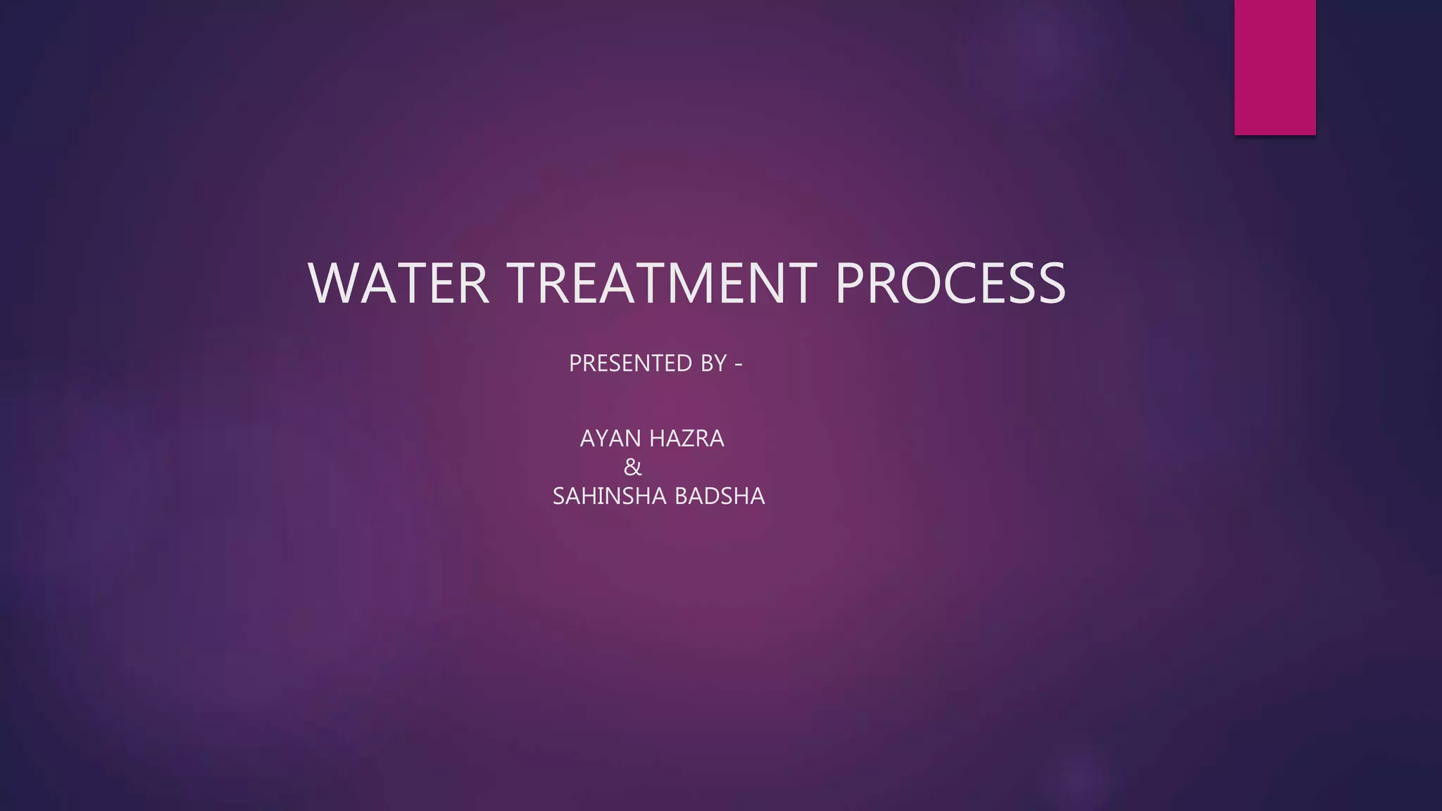 Surface water treatment involves several steps: (1) intake of water from rivers through screens and grit chambers, (2) addition of chemicals like chlorine, lime, and alum through rapid mixing, (3) coagulation through slow mixing to form and densify flocs, (4) settling of flocs in tanks, (5) filtration through granular materials to remove particles, and (6) disinfection through chlorination to remove pathogens before distribution. Proper treatment is essential to make surface water potable and safe for human consumption.