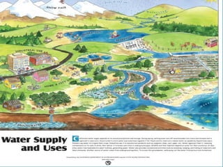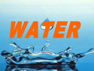 Nearly two thirds of the Earth's surface is covered by water. Water exists in liquid, solid, and vapor forms and can easily change between these states. The melting point of ice is the temperature at which ice changes to water. While about 97% of water on Earth is in the oceans, only around 2% is fresh water suitable for human use, so it is important to conserve this precious resource. Water scarcity is a problem in many areas due to factors like pollution, leakage, and waste.
