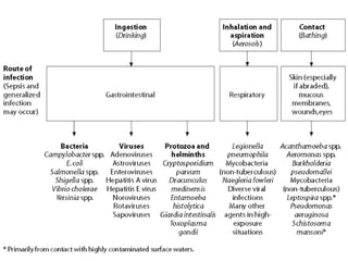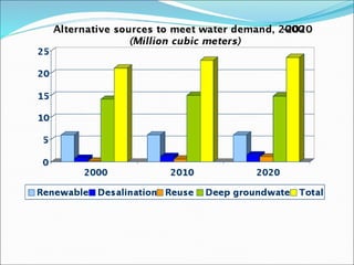 The document discusses water-related health issues in Saudi Arabia. It provides statistics on access to water and sanitation in KSA as of 2002, noting regional variations. Diarrheal cases are highest among children under 5. The most significant water-related illnesses in KSA are diarrhea, typhoid, hepatitis A, and diseases caused by Shigella and E. coli. Improved access to water and sanitation is needed to meet health targets and address problems caused by population growth, limited services, and water contamination.
