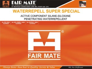 Waterrepell Super Special is a ready-to-use silane-siloxane system for treating porous substrates like masonry, brick, and concrete, enhancing their water repellence and self-cleaning properties. It effectively reduces water absorption, minimizes efflorescence, and prolongs the clean appearance of structures. Available in various sizes, it covers approximately 4 to 5 m² per liter.
