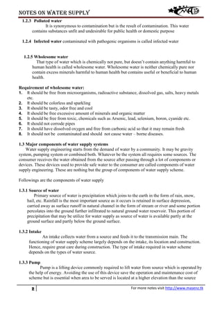 This document provides an overview of key components and objectives of a water supply system. It discusses the following: