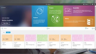 Watson Analytics is a cloud-based self-service business intelligence and data discovery tool that enhances, scales, and accelerates human expertise to help address complex challenges. It allows business users to access and analyze corporate data from various sources through a natural language interface to gain insights. Watson Analytics helps users prioritize accounts receivable, improve employee retention, optimize marketing campaigns, and increase customer retention through predictive analytics and visual storytelling.